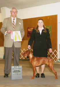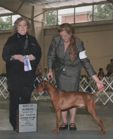 Una Roja, JH. See pictures of her on the Our Dogs/Females page. The next day at the same show, Jim's female Lorrin also won a 3 point